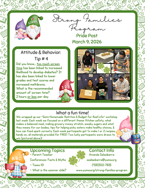 The Strong Families Program (SFP), located on the OC Johnson Campus, is a district-wide program open to all YSD1 families.